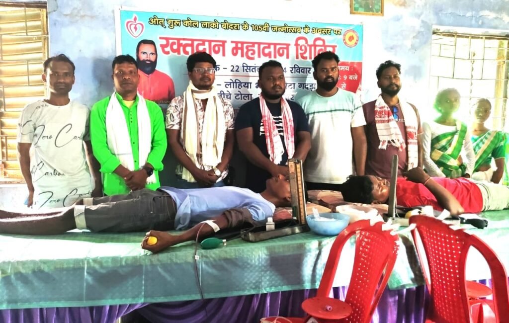 छोटानागपुर वेलफेयर सोसाइटी छोटा गदड़ा और नई जिंदगी परिवार जमशेदपुर के सौजन्य से ओत गुरु कोल लाको बोदरा के 105वीं जन्मोत्सव पर छोटा गदड़ा में कुल 60 युवाओं ने रक्तदान किया। सभी रक्तदाता अपने अपने पारंपरिक परिधान में आकर रक्तदान किए। मौके पर मुख्य अतिथि के रूप में जुगसलाई विधायक मंगल कालिंदी और सरप्राइज अतिथि हो एवं संताली फिल्म सिने स्टार राजुराज बिरुली तथा ग्राम प्रधान सुखलाल हेम्ब्रम उपस्थित थे। करनडीह निवासी प्रेम पिंगुआ ने शिविर में अपने जीवन का कुल 29वीं बार रक्तदान कर ग्रामीण क्षेत्रों के लिए एक मिसाल बने हुए हैं।