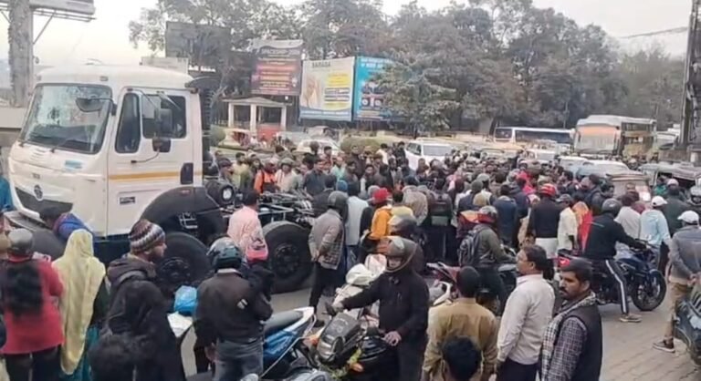 जानकारी के अनुसार बाइक सवार आगे आगे चल रहा था जबकि चेचिस उसके पीछे था। इसी दौरान चेचिस चालक ने बाइक को अपनी चपेट में ले लिया और कुछ दूर तक घसीटते हुए ले गया। इधर, घटना स्थल पर स्थानीय लोगों ने पुलिस पर आरोप लगाते हुए जमकर हंगामा किया जिससे सड़क पर जाम की स्थिति उत्पन्न हो गई।