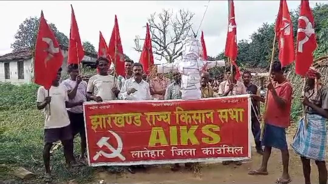 झारखंड राज्य किसान सभा के बैनर तले प्रधानमंत्री मोदी का पुतला फुंका