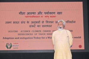 अगर वो अपने इरादों में कामयाब हो जाती तो दिल्ली अगले पंद्रह साल में ख़त्म हो जाती। उन्होंने कहा कि वर्ष 2015 के कॉप 21 के पहले क्लाइमेट चेंज की परिभाषा में जल था ही नहीं। सिर्फ़ वायु था। बरसात के जल को इकट्ठा कर बांध बनाने से राजस्थान की जल समस्या की स्थिति में बदलाव आया। ऐसा करने से नदिया पुर्नजीवित होने लगी हैं। अब तक 23 नदियां जीवित की जा चुकी हैं। नादियों के प्रवाह का अधिकार भारत सरकार के पास है, लेकिन बारिश के पानी पर अधिकार राज्य सरकार के पास है।