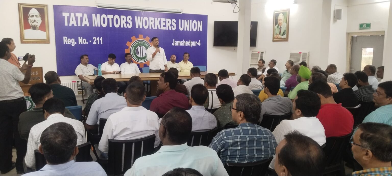 जमशेदपुर में पूर्व निर्धारित कार्यक्रम के तहत बुधवार को टाटा मोटर्स वर्कर्स यूनियन की कमेटी मीटिंग पूर्वाह्न 11 बजे यूनियन के गोपेश्वर हॉल में आयोजित की गई। बैठक की अध्यक्षता यूनियन के अध्यक्ष शशि भूषण प्रसाद ने किया। बैठक में विषय प्रवेश महामंत्री आरके सिंह ने कराया । बैठक में मुख्य रूप से बोनस समेत विभिन्न मुद्दों पर चर्चा हुई। कमेटी मीटिंग में अध्यक्ष शशि भूषण प्रसाद , महामंत्री आरके सिंह के आलावे कार्यकारी अध्यक्ष अनिल शर्मा, संयुक्त महामंत्री अजय भगत , एच एस सैनी , एस एन सिंह समेत तमाम आफिस बेयरर , कमेटी मेंबर उपस्थित थे।