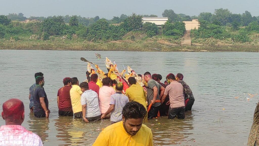 दुर्गापूजा संपन्न होने के बाद रविवार को स्वर्ण रेखा नदी घाट मऊभंडार में देवी दुर्गा की प्रतिमाओं को विसर्जन कर दिया गया। रविवार को सार्वजनिक दुर्गा पूजा पंडाल में एक रामकृष्ण मठ द्वारा देवी दुर्गा की प्रतिमाओं का सबसे पहले विसर्जन किया गया। इस मौके पर स्वामी नताराजानंद जी महाराज श्याम महाराज, सुशांत महाराज व प्रवीर महाराज उपस्थित थे।
