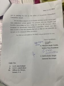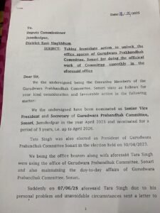 इधर, सोनारी की संगत ने डीसी को मिलकर अपनी बात बुधवार दोपहर रख दी है. उन्हें क्या आश्वासन मिला यह बाद की बात है, उसका लेटर आप पढ़ सकते हैं. ऑफिस में तीन माह से ताले लगे हुए है. संगत परेशान हो रही है. लेकिन इन चर्चाओं के बीच सिख समाज को बदनाम करने से कौन रोकेगा. यह चर्चा पूरे जगत में हो रही है. प्रधान भगवान सिंह की स्वच्छ क्षवि अब दांव पर लग गई है. उनकी सोच का पर्दाफाश होना बाकी है.