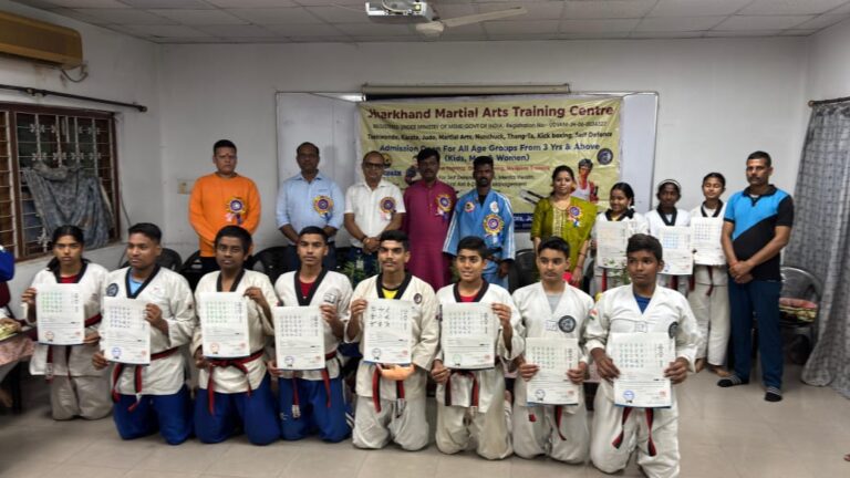 झारखंड मार्शल आर्ट्स ट्रेनिंग सेंटर द्वारा टेल्को स्थित रेक्रिएशन क्लब में दो दिवसीय परीक्षण कैंप का सफल आयोजन किया गया, जिसके समापन समारोह में 11 प्रशिक्षु विद्यार्थियों को ब्लैक बेल्ट फर्स्ट डैन (1st DAN) और प्रशस्ति पत्र से सम्मानित किया गया।