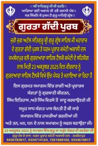 अकाली दल के रविंद्र सिंह के अनुसार गुरवार यानी आज सुबह 10 से दोपहर डेढ़ बजे तक विशेष समागम होंगे, जिसमें कीर्तनीये, प्रचारक संगत को गुरु के उपदेशों से निहाल करेंगे. साथ ही संगत के बीच गुरु का अटूट लंगर भी वितरित किया जायेगा. उन्होंने संगत को इस प्रमुख अवसर का लाभ लेते हुए गुरु घर की खुशियां प्राप्त करने की अपील की है.