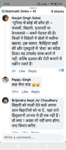 छठ अमीर गरीब, जांत पाँत से ऊपर उठाने का यंत्र है। ये चीज धरती के हर कोने में संभव नहीं है. दो बीएचके के फ्लैट में रहने वाले दो कट्ठा जमीन में रहने का सुख नहीं समझ सकते. खैर, सुधांशु ओझा के पोस्ट पर कई लोगों ने कमेंट्स किए है. एकाध लोगों ने सुधांशु ओझा के पोस्ट पर एकाध लाइन लिखी है. भगवान सिंह समेत कई लोगों ने उनके पोस्ट पर तीखी प्रतिक्रिया व्यक्त की है.