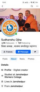 सुधांशु ओझा ने अपने फेसबुक पेज पर टाटानगर स्टेशन पर छठ गीत के साथ स्वागत का पोस्ट वायरल किया है तो गृह मंत्री अमित शाह का घुसपैठियों को देश से बाहर करने से संबंधित समाचार पर भी अपनी प्रतिक्रिया दी है. उससे पहले के पोस्ट में सुधांशु ओझा ने अनायास ही ऐसे प्रसंग पर अपने विवादास्पद विचार रखे है जिसका कोई औचित्य ही प्रतीत नहीं होता.