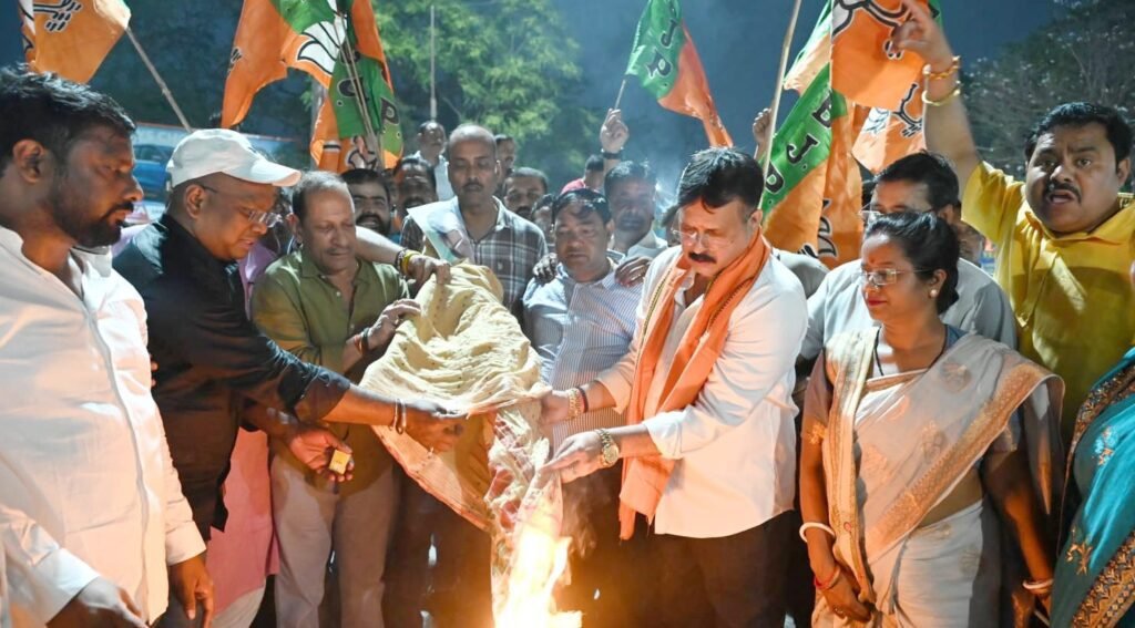 पश्चिम बंगाल के सिलीगुड़ी के पास बिधाननगर में राष्ट्रपति द्रौपदी मुर्मू के राजकीय दौरे पर प्रोटोकॉल का पालन नहीं करने के लिए पश्चिम बंगाल सरकार को लेकर देशभर में राजनीतिक प्रतिक्रिया तेज हो गई है। इस मुद्दे को लेकर भाजपा कार्यकर्ताओं में भी गहरा आक्रोश देखा जा रहा है। पश्चिम बंगाल में ममता बनर्जी सरकार द्वारा राष्ट्रपति द्रौपदी मुर्मू के अनादर के विरोध में भाजपा जमशेदपुर महानगर द्वारा साकची स्थित जुबिली पार्क गोलचक्कर पर पश्चिम बंगाल के मुख्यमंत्री ममता बनर्जी का पुतला दहन कर आक्रोश व्यक्त किया। इस दौरान भाजपा कार्यकर्ताओं ने ममता बनर्जी सरकार के खिलाफ जमकर नारेबाजी की और इस घटना को शर्मनाक और लोकतांत्रिक मर्यादाओं के विपरीत बताया।
