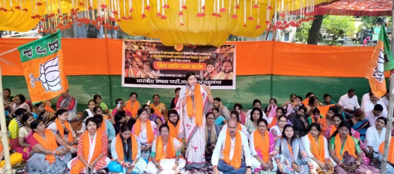 जिला उपायुक्त कार्यालय के समक्ष भाजपा ने किया धरना-प्रदर्शन, विधायक पूर्णिमा साहू ने सरकार पर बोला हमला