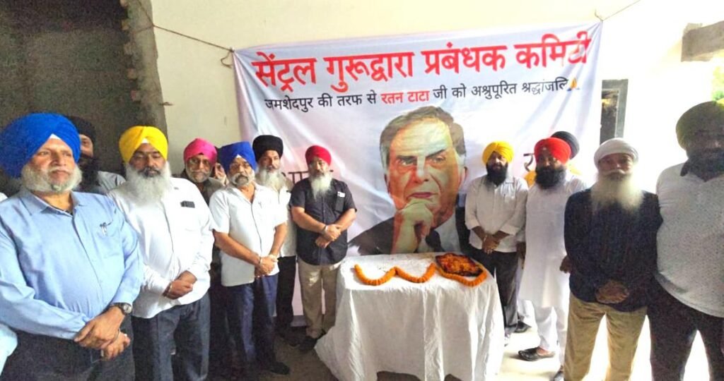 टाटा समूह के मानद चेयरमैन और दिग्गज उद्योगपति रतन टाटा के निधन पर सेंट्रल गुरुद्वारा प्रबंधक कमिटी (सीजीपीसी) ने गहरा शोक जताया है। गुरुवार को साकची स्थित कार्यालय में स्वर्गीय रतन टाटा की तस्वीर पर पुष्प अर्पित कर उनकी आत्मा की शांति के लिए दो मिनट का मौन रख श्रद्धांजलि दी।