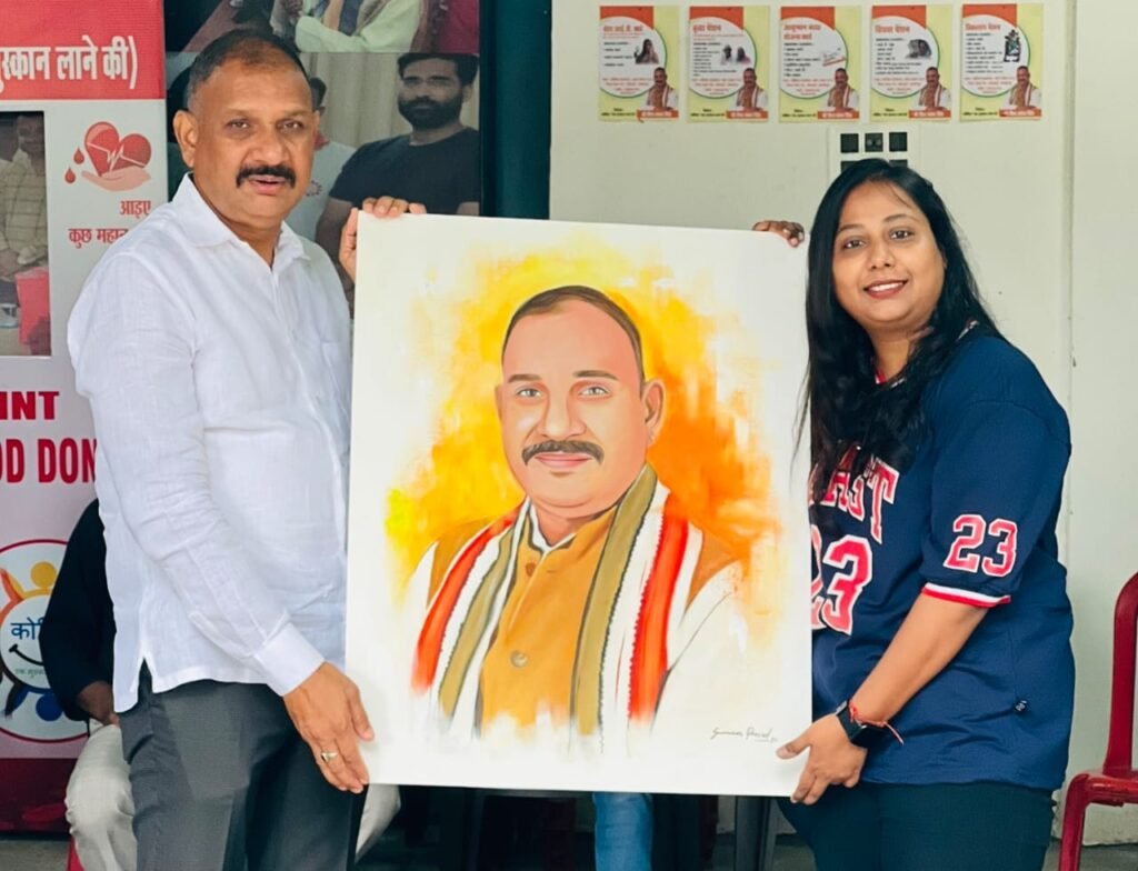 ख्यातिप्राप्त आर्टिस्ट सुमन प्रसाद ने भाजपा नेता सह सामाजिक कार्यकर्ता शिव शंकर सिंह की हुबहू बनाई खूबसूरत पेंटिंग उन्हें उपहार स्वरूप भेंट की।