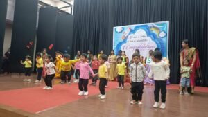 कार्यक्रम की शुरुआत नमस्ते गीत से हुई, जो विद्यालय में संस्कारों के समावेश को दर्शाता है। इसके पश्चात बच्चों ने “वन ईयर ओल्डर, वन ईयर वाइज़र” गीत प्रस्तुत कर अपने विकास और सीखने की झलक दिखाई।
