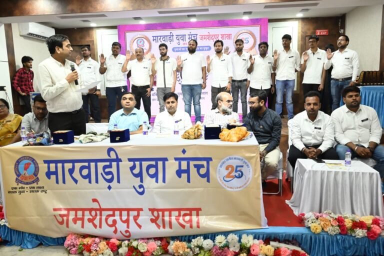 जमशेदपुर मारवाड़ी युवा मंच शाखा के सत्र 2026-27 के लिए शपथ ग्रहण समारोह का भव्य आयोजन उत्साह, गरिमा और भव्यता के साथ सम्पन्न हुआ। इस अवसर पर समाजसेवा, संगठन सशक्तिकरण और सांस्कृतिक मूल्यों के संरक्षण का संदेश प्रमुखता से दिया गया।