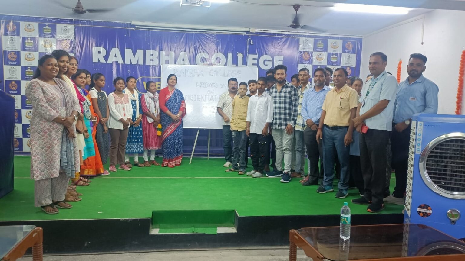 रंभा कॉलेज के स्नातक के सत्र 2023– 2027 के विद्यार्थियों का आज अभिनंदन सह स्वागत समारोह आयोजित किया गया।इस आयोजन में सभी विद्यार्थियों का स्वागत तिलक लगाकर किया गया। विद्यार्थियों का स्वागत करते हुए कॉलेज के सीनियर छात्र-छात्राओं ने स्वागत भाषण दिया।