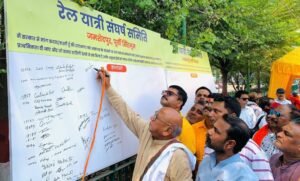 पिछले 7 अप्रैल को जब धरना दिया गया था, उस वक्त भी सूर्यदेव पूरी तरह आक्रामक थे। रविवार को जब दस्तखत अभियान चल रहा था, तब भी सूर्यदेव की आक्रामकता पहले जैसी ही थी। लोग पसीने से तर-बतर हो रहे थे लेकिन किसी ने भी आयोजन स्थल को छोड़ा नहीं। समिति की तरफ से ओआरएस का घोल और शीतल जल की व्यवस्था की गई थी। लोग ओआरएस का घोल और शीतल जल पीकर हस्ताक्षर स्थल पर बैठे रहे।