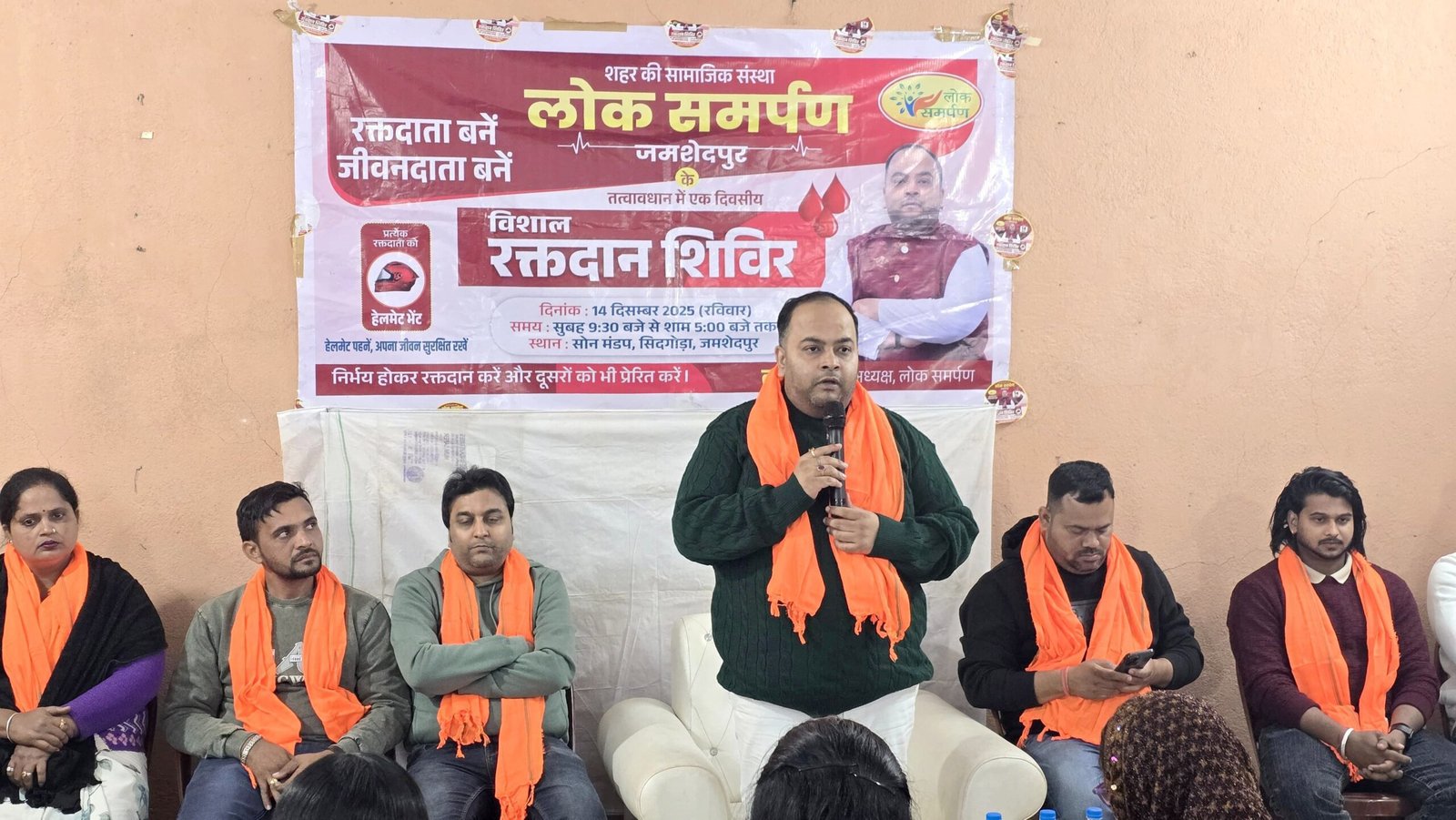 लौहनगरी जमशेदपुर की प्रतिष्ठित सामाजिक संस्था लोक समर्पण द्वारा आगामी 14 दिसंबर (रविवार) को सिदगोड़ा स्थित सोन मंडप परिसर में एक दिवसीय महारक्तदान शिविर का आयोजन किया जा रहा है। रक्तदान शिविर को सफल बनाने के लिए संस्था व्यापक स्तर पर तैयारियाँ कर रही है। संस्था के संरक्षक एवं युवा समाजसेवी ललित दास के नेतृत्व में शहर के विभिन्न क्षेत्रों में युवाओं की उपस्थिति में लगातार बैठकें आयोजित कर लोगों को शिविर में भाग लेने हेतु आमंत्रित किया जा रहा है। साथ ही, शिविर की बेहतर रूपरेखा तय करने के लिए सुझाव भी लिए जा रहे हैं। बैठक में रक्तदान शिविर के प्रचार-प्रसार एवं जनभागीदारी के लिए पोस्टरों का वितरण भी किया जा रहा है।