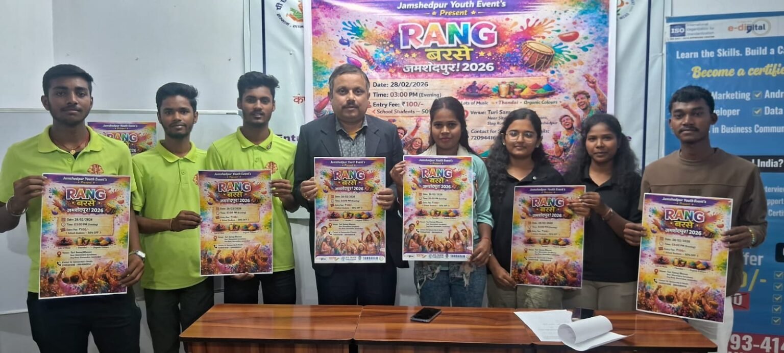 जमशेदपुर में साकची स्थित ई-डिजिटल इंस्टिट्यूट के कार्यालय में एक प्रेस वार्ता का आयोजन किया गया. इसमें बताया गया कि जमशेदपुर यूथ इवेंट द्वारा आगामी 28 फरवरी, समय अपराह्न 3:00 बजे से सीतारामडेरा गुरुद्वारा के निकट स्थित तुरी समाज भवन के प्रांगण में रंगों का महापर्व से संबंधित इवेंट “रंग बरसे जमशेदपुर 2026” नामक कार्यक्रम का आयोजन किया जा रहा है. यह जमशेदपुर के युवाओं को ध्यान में रखते हुए आयोजित हो रहा है. इस कार्यक्रम में जमशेदपुर के युवाओं के लिए होली से संबंधित सदाबहार गाने, प्राकृतिक रंग और ठंडाई का इंतजाम किया गया है. वहीं आयोजन में नशापान और अश्लील गानों को प्रतिबंध रखा गया है.