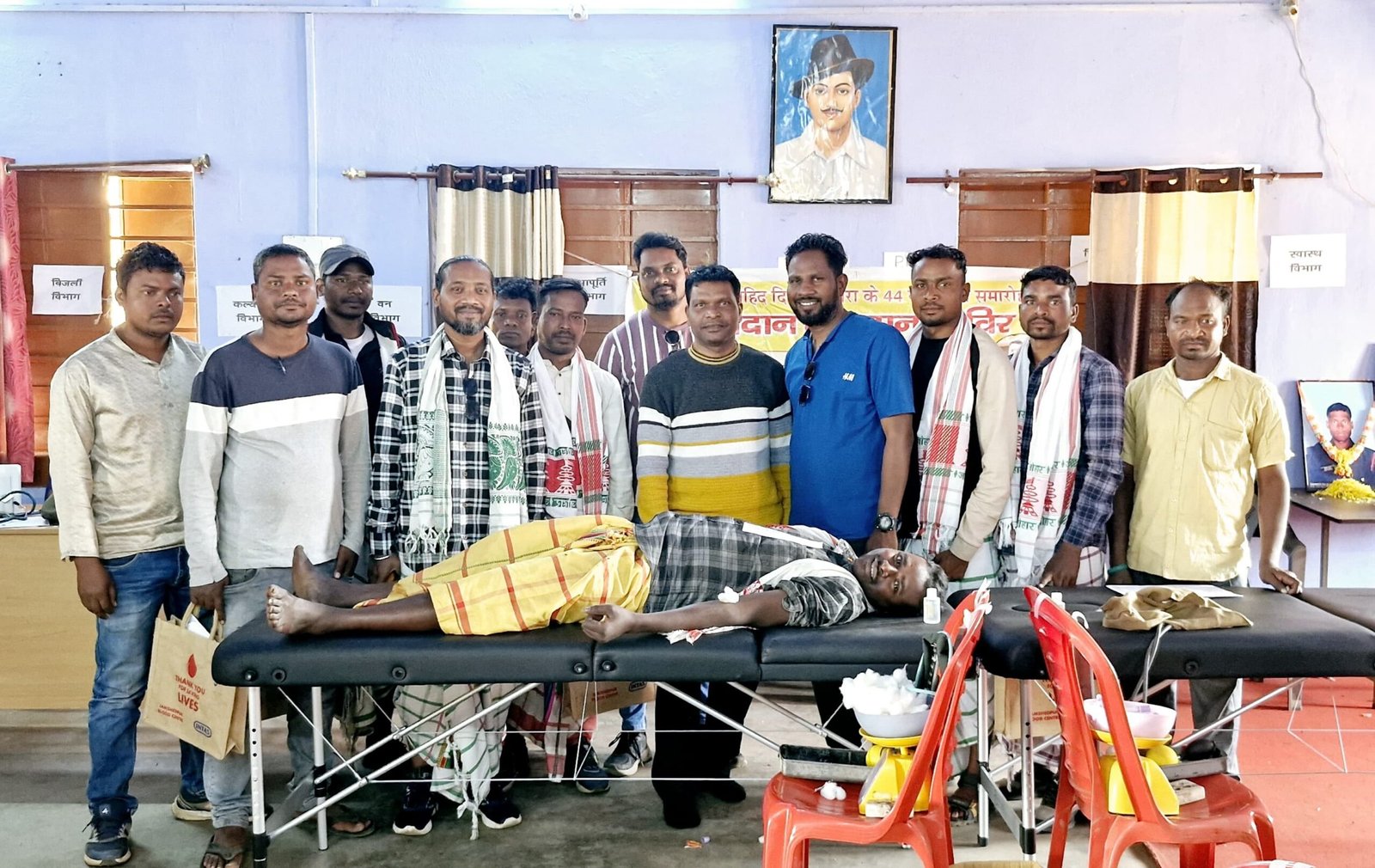 शहीद दिलीप बेसरा स्मारक समिति, बेनाशोल और नई जिंदगी परिवार जमशेदपुर के संयुक्त तत्वावधान में मुसाबनी प्रखण्ड के बेनाशोल पंचायत भवन में लगातार चौथी बार रक्तदान शिविर का आयोजन किया गया । शिविर में कारगिल शहीद दिलीप बेसरा की 44वीं जयंती समारोह के अवसर पर पंचायत निवासी युवाओं ने अपने वीर सपूत के लिए रक्तदान किया। बिष्टुपुर स्थित जमशेदपुर ब्लड सेंटर और वीवीडीए के सौजन्य से इस रक्तदान शिविर में कुल 60 युवाओं ने स्वेच्छा से आकर रक्तदान किया।