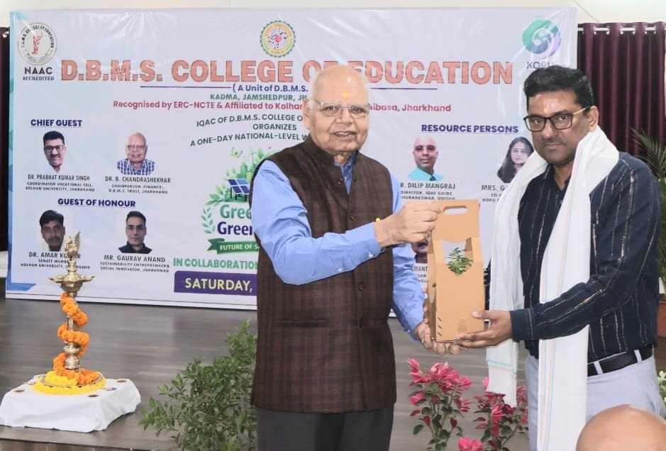 जमशेदपुर के डी.बी.एम.एस. कॉलेज ऑफ एजुकेशन में कोरू फाउंडेशन के सहयोग से “ग्रीन एनर्जी और ग्रीन टेक्नोलॉजी: सतत विकास का भविष्य” विषय पर एक दिवसीय राष्ट्रीय स्तरीय कार्यशाला का आयोजन किया गया। कार्यशाला का शुभारंभ प्रातः 10:00 बजे हुआ। इसमें झारखंड, ओडिशा और पश्चिम बंगाल के विभिन्न महाविद्यालयों से आए विद्यार्थियों एवं शिक्षकों ने उत्साहपूर्वक भाग लिया।