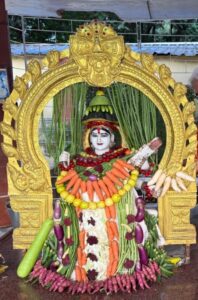 पूरे दक्षिण भारत में नवरात्र के नवमी के दिन माँ सरस्वती की आराधना और पूजा की जाती है. इसी क्रम में डीबीएमएस इंग्लिश स्कूल परिसर में स्थित माँ सरस्वती के मंदिर में पूजा अर्चना की गई. माँ सरस्वती को मौसमी सब्जियों से सजाया गया जो अपने आप में काफी आकर्षक रहा.