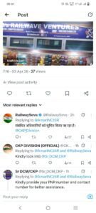 टाटा से घाटशिला जाने के क्रम में एम रवि शंकर राव ने चार दिन पूर्व एक शिकायत की थी. उनका अनारक्षित टिकट नंबर 73232131 था. रेल जीएम, रेल सेवा केंद्र आदि जिम्मेदार लोगों को शिकायत की गई थी. वहां से संज्ञान भी लिया गया. मामले की जांच करने के लिए सीकेपी डिवीजन के संबंधित अधिकारियों को कहा गया, जो ट्वीट (अभी एक्स) पर साफ देखा जा सकता है, लेकिन उसके बाद भी कोई कार्रवाई स्थानीय स्तर पर नहीं की गई.