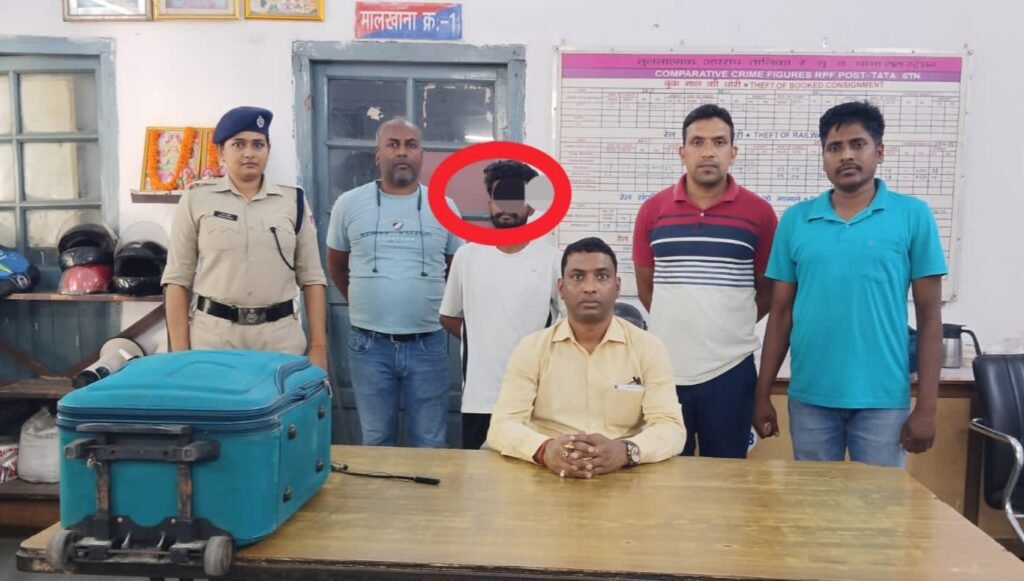 सूचना पाकर RPF टीम टाटा और जीआरपी टाटा के संयुक्त प्रयास से घाटशिला रेलवे स्टेशन से सूटकेस के साथ चोर को पकड़ लिया गया. पकड़े गए व्यक्ति का नाम शुभम गुप्ता (उम्र करीब 28 वर्ष) मनीफीट का रहने वाला है, जिसे आगे की कार्रवाई के लिए रेल पुलिस घाटशिला को सुपुर्द कर दिया गया है.