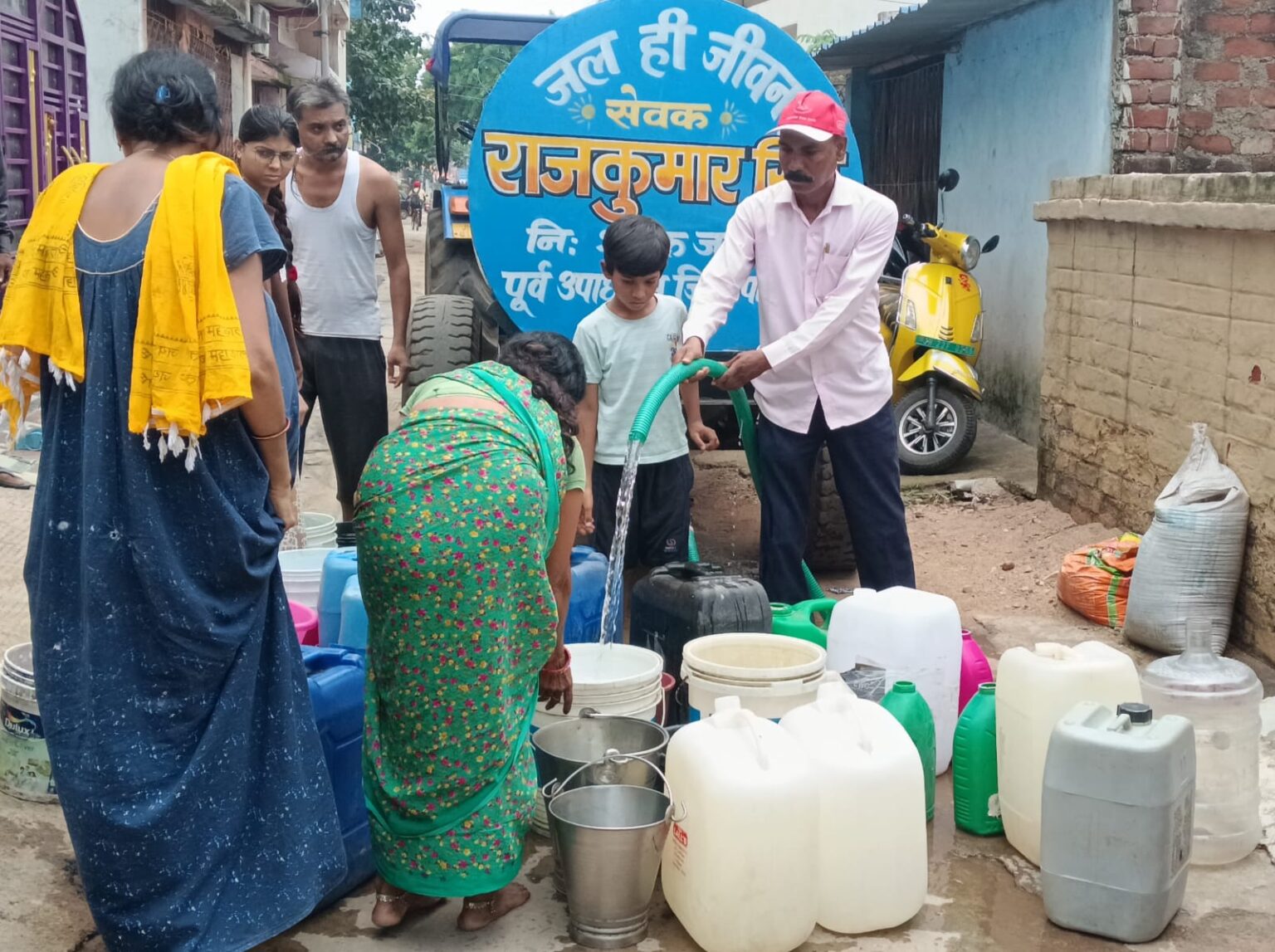पंचायत समिति सदस्य सुनील गुप्ता के आग्रह पर पूर्व जिप उपाध्यक्ष राजकुमार ने अपने निजी पानी टैंकर को बागबेड़ा कॉलोनी रोड नंबर 5 में भेजवाए। स्थानीय लोगों ने कतार में लगकर पीने का पानी भरने का कार्य किए। विदित हो कि बागबेड़ा कॉलोनी में पानी की आपूर्ति नहीं होने पर पूर्व जिप उपाध्यक्ष राजकुमार सिंह अपने निजी टैंकर से लगातार निःशुल्क पीने का पानी वितरण करवाते रहते हैं।